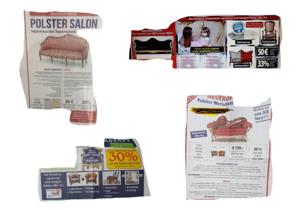 Auf überhöhten Stoffpreisen und Arbeitskosten (in Polizeiberichten wird von „Wucher und Betrug“ gesprochen) werden großzügige Rabatte gewährt. Gegen Anzahlung in Höhe von 30 bis 50 % werden die Möbel mitgenommen.
